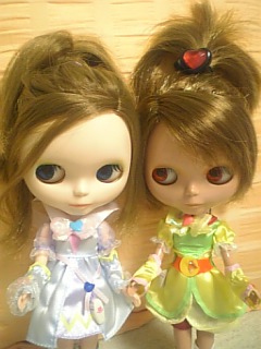 友達のキヨノさんがお泊りに来てます。 ふたりでまずやったことは ブライスいじり(≧▽≦)v おもちゃ売り場で服が安くなってるのを発見したので購入して 着せ替えー ぷりっきゅあー!(左:長女紫乃 右:次女ジン) …いかん、可愛い。(親バカ) お次はキヨノちゃんちの紅ちゃんとうちのまる。 ふたりとも未カスタム。 …やっぱり可愛い。(親バカ、そして友バカ) ひとんちの娘さんを見ても、ふへvと笑ってしまう自分…危険だ。 このあと、紅ちゃんとジンはカスタム♪ 異国、て感じにしたかったので …こんなんなりました。 お気に入りショットv 目をつむるとこんな感じ。 いやぁ。それにしても。 ジンはずっとメイクとれたまんまだったし あんまりいじってあげられてなくて(>_<)…髪は切ったりしたけど。 今回満足のいく出来になってよかったですv ちなみにホントはもっとゴッシャー!と… そりゃもう特殊メイクかよってくらい変形させてみたかったんですが まだイメージと技術がついてこないので それはまた今度。(笑) つぎはまるの番かな? 頑張って可愛くすっぞー( ̄▽ ̄)ノ |