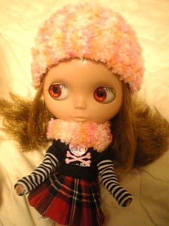 マフラーと帽子を作りました。